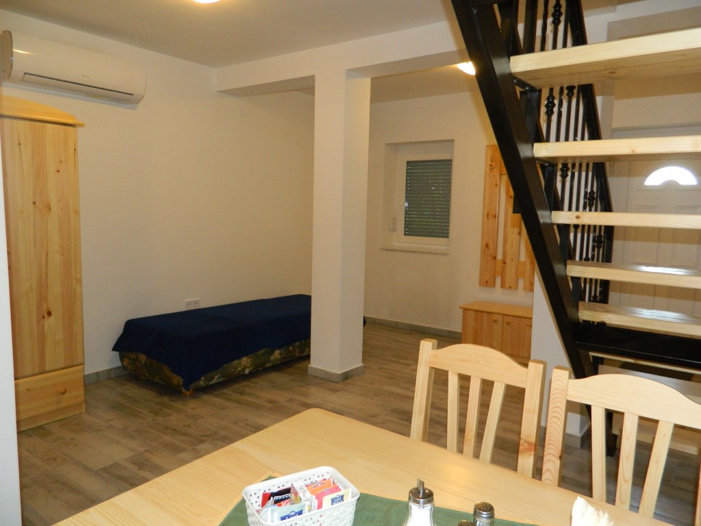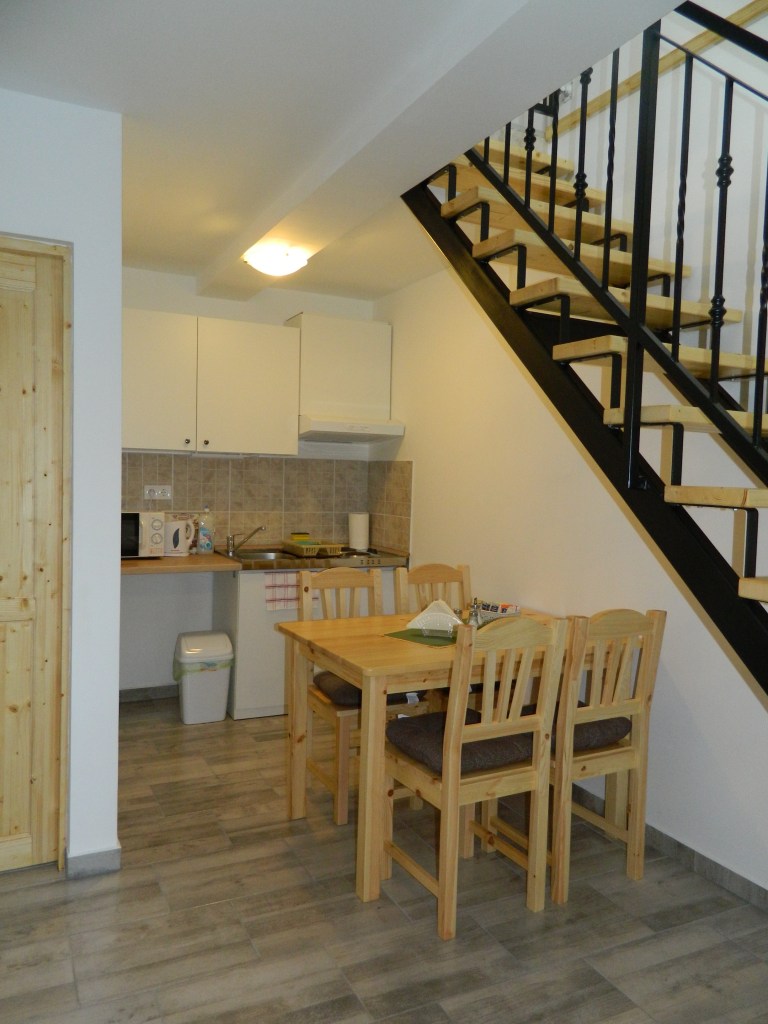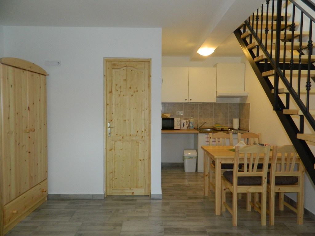 Lakórész: földszinti étkező és konyha, illetve külön fürdőszoba