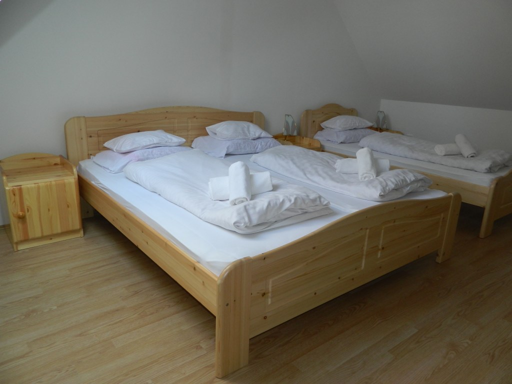 Hálórész: tetőtéri 1 db francia ágy + 2 db heverő (180 x 200 cm , illetve 90 x 200 cm)