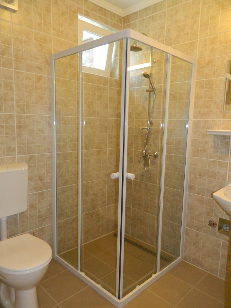 Fürdőszoba: zuhanykabin, WC, mosdó, villanybojler